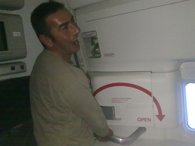 Ora ao fim de 6 horitas de vôo a coisa já começa a piar mais fina. Os ossos doem, a garganta seca, já vimos n filmes e outras tantas músicas e a comida que servem não deveria ser chamada de comida. Já me tinha informado sobre viagens destas e apliquei algumas das coisas que li. Andei a passear pelo avião, confratenizei com passageiros e hospedeiras, vi mais filmes e li ainda mais revistas...