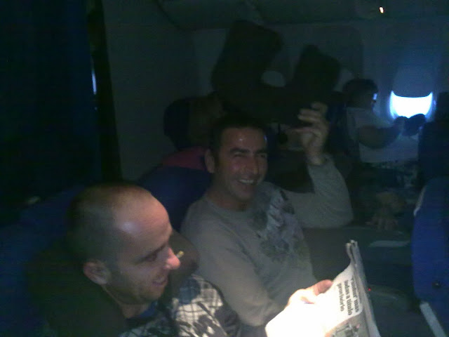 A esta hora o shor Hugo e a sua comitiva já vão a caminho, entre uns filmes, uma troca de palavras com as hospedeiras e uns sonos à mistura com sonhos.... ai vão eles.